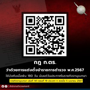 ประกาศในราชกิจจานุเบกษา เล่มที่ 141 ตอนที่ 19 ประเภท ก เมื่อ 5 เมษายน 2567
