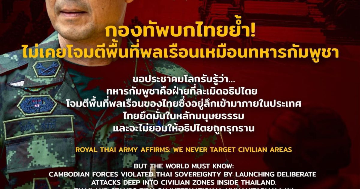 กองทัพบกไทยย้ำ! ไม่เคยโจมตีพื้นที่พลเรือนเหมือนทหารกัมพูชา Royal Thai Army affirms: We never targeted civilian areas like Cambodian troops did.