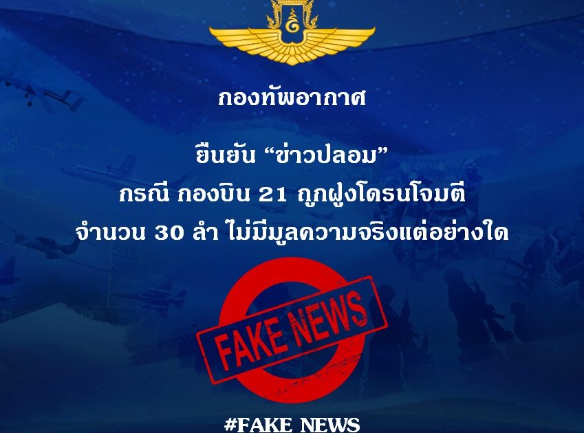 กองทัพอากาศ ยืนยัน “ข่าวปลอม” กองบิน 21 ไม่ได้ถูกฝูงโดรนโจมตีแต่อย่างใด