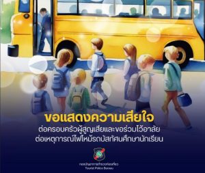 กองบัญชาการตำรวจท่องเที่ยว ขอแสดงความเสียใจอย่างสุดซึ้งกับครอบครัวผู้ได้รับบาดเจ็บและเสียชีวิตเหตุไฟไหม้รถบัสทัศนศึกษา ถนนวิภาวดี