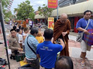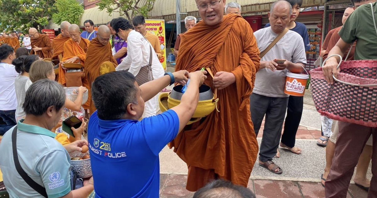 วันที่ 22 พ.ค.2567 เวลาประมาณ 06.30 น. ร.ต.อ.พิตรพิบูล วุฒิคุณ รอง สว.ส.ทท.3 กก.1 บก.ทท.๒ ชุดปฏิบัติการสายตรวจชุดช่องเม็กร่วมกิจกรรมทำบุญตักบาตร “โครงการถนนสายวัฒนธรรมตำบลช่องเม็ก” เนื่องใน วิสาขบูชา วันขึ้น 15 ค่ำ เดือน 6 โดยมี นายวงศ์พิสุทธิ์ ดำรงสิทธิ์ นายกองค์การบริหารส่วนตำบลช่องเม็ก มาเป็นประธานในพิธี และ มีพ่อค้า ประชาชน เด็กและเยาวชน หน่วยงานราชการในพื้นที่ร่วมทำบุญตักบาตรกันอย่างเนืองแน่น ณ ถนนสายวัฒนธรรมหน้าด่านพรมแดนช่องเม็ก ต.ช่องเม็ก อ.สิรินธร จ.อุบลราชธานี