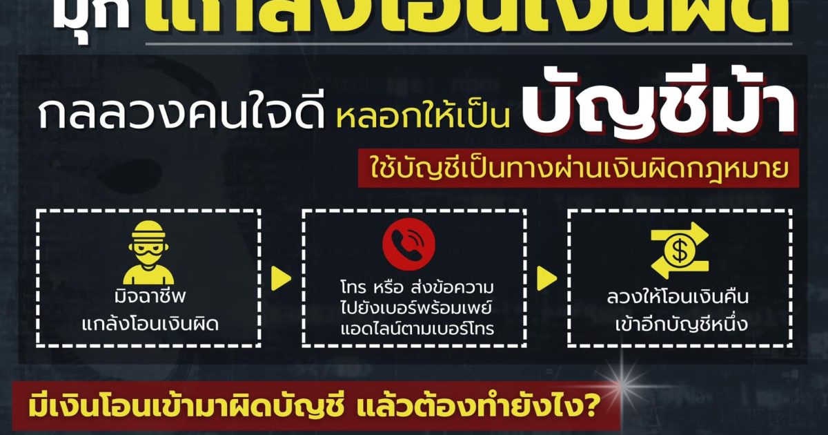 รู้ทันโจรออนไลน์ มุก “แกล้งโอนเงินผิดบัญชี” กลลวงคนใจดี หลอกให้เป็น “บัญชีม้า”