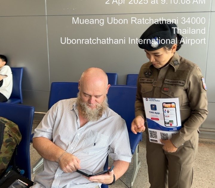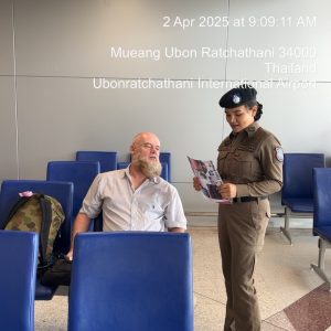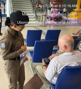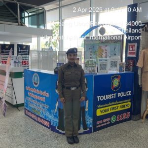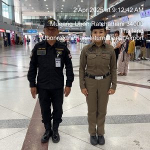 ด.ต.หญิงอังคณา ทรงอยู่ ชุดปฏิบัติการท่าอากาศยานนานาชาติอุบลราชธานี ปฏิบัติหน้าที่ดูแลอำนวยความสะดวก รักษาความปลอดภัย,ให้กับประชาชน,ผู้โดยสาร,นักท่องเที่ยว เเละได้ประชาสัมพันธ์ แอพพลิเคชั่น Thailand Tourist Police & stop walk and talkให้กับประชาชน ตามนโยบาย ผบช.ทท ณ ท่าอากาศยานนานาชาติอุบลราชธานี