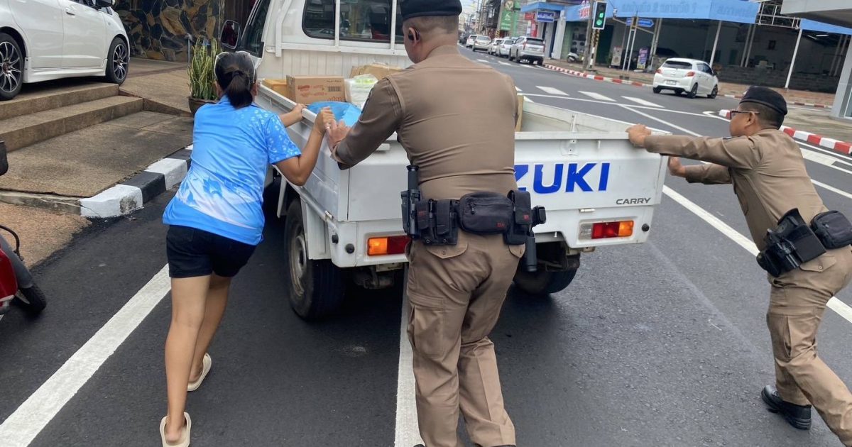 ชุดสายตรวจประจำวันให้การช่วยเหลือ กรณีพบรถยนต์กระบะจอดดับและกีดขวางการขราจรอยู่บริเวณกลางถนนสาธารณะ