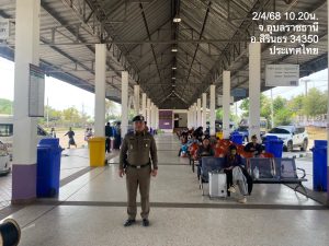 ร.ต.อ.พิตรพิบูล วุฒิคุณ พร้อมด้วย ชุดปฏิบัติการสายตรวจชุดช่องเม็ก ออก ว.4 เพื่อดูแลความปลอดภัย,อำนวยความสะดวกให้กับประชาชนเเละนักท่องเที่ยว, ประชาสัมพันธ์สายด่วน 1155 พร้อมด้วย แอพพลิเคชั่น Thailand Tourist Police ให้กับประชาชน เเละได้ Stop walk&talk ให้คำแนะนำ ประชาสัมพันธ์แก่นักท่องเที่ยว ตามนโยบายผู้บังคับบัญชา ณ วัดป่าบ่อน้ำพระอินทร์ ต.ช่องเม็ก และ สถานีขนส่งผู้โดยสารช่องเม็ก ต.ช่องเม็ก อ.สิรินธร จ.อุบลราชธานี