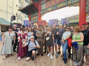 วันนี้ (23 ม.ค.68 เวลา 19.00 น.) พล.ต.ท.ศักย์ศิรา เผือกอ่ำ ผบช.ทท. พร้อมด้วย Mr. Kong Zhulei ผู้แทนจากสถานเอกอัครราชทูตจีนประจำประทศไทย, พล.ต.ต.นรเศรษฐ์ สุวรรณนิกขะ ผบก.อก.บช.ทท. รรท.ผบก.ทท.1, พ.ต.อ.ศราวุธ ตันกุล รอง ผบก.ทท.1, พ.ต.อ.กรฤวิศวร์ ทองศรีวาณิช ผกก.1 บก.ทท.1 และ พ.ต.ท.ขวัญพล เพ็งเดือน สวญ.ส.ทท.2 กก.1 บก.ทท.1 ร่วมกันออกตรวจพื้นที่ร่วมกับภาคีเครือข่าย อาสาสมัครตำรวจท่องเที่ยวเพื่อสร้างความเชื่อมั่นให้ให้แก่นักท่องเที่ยว จากนั้นได้ร่วมกันแจกของที่ระลึกให้กับนักท่องเที่ยว พร้อมทั้งประชาสัมพันธ์แอปพลิเคชั่น Thailand Tourist Police และสายด่วนรับแจ้งเหตุ 1155 พร้อมทั้งเยี่ยมชมร้านค้าในงานเทศกาลตรุษจีนเยาวราช ประจำปี 2568 ณ ถนนเยาวราช กรุงเทพฯ เพื่อสร้างบรรยากาศการท่องเที่ยวปลอดภัย และพร้อมต้อนรับนักท่องเที่ยวที่จะเดินทางมาเที่ยวและเฉลิมฉลองเทศกาลตรุษจีนในประเทศไทย