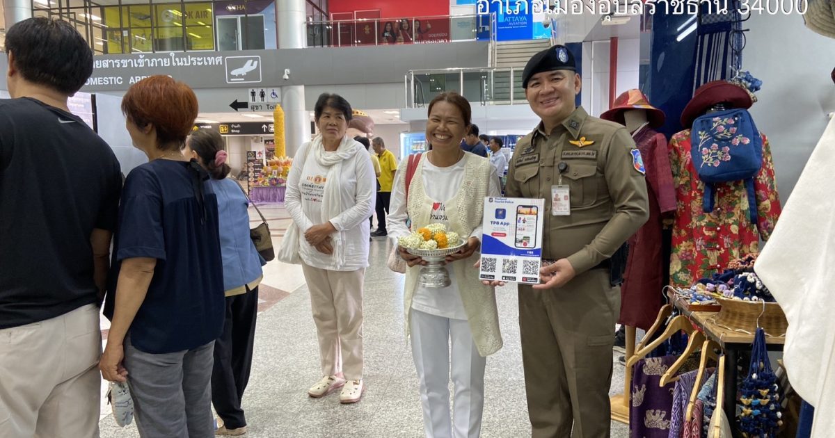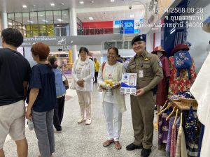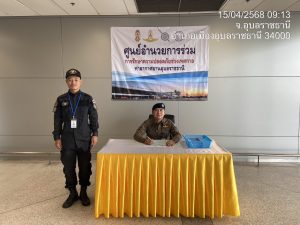ด.ต.ชัยรัตน์ แสนทวีสุข ชุดปฏิบัติการประจำท่าอากาศยานนานาชาติอุบลราชธานี ปฏิบัติหน้าที่ศูนย์อำนวยการร่วม ดูแลอำนวยความสะดวก รักษาความปลอดภัย,ให้กับประชาชนเเละนักท่องเที่ยว เเละได้ประชาสัมพันธ์ สายด่วน 1155 และแอพพลิเคชั่น Thailand Tourist Police & stop walk and talk ให้กับประชาชน ในห้วงเทศกาลสงกรานต์ประจำปี ๒๕๖๘ ตามนโยบาย ผบช.ทท ณ ท่าอากาศยานนานาชาติอุบลราชธานี