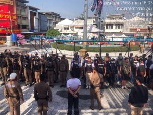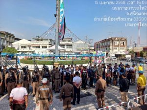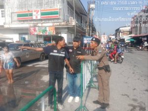 ด.ต.ภัทรชัย เอิบบุญ พร้อมด้วยชุดปฏิบัติการ จว.ศรีสะเกษ ร่วมปล่อยแถวและดูแลความปลอดภัยประชาชน/นักท่องเที่ยว ในห้วงเทศกาลวันสงกรานต์ 2568 บริเวณวงเวียนน้ำพุสถานีรถไฟศรีสะเกษ จ.ศรีสะเกษ และออกตรวจดูแลความปลอดภัย,อำนวยความสะดวกให้กับประชาชนเเละนักท่องเที่ยวพร้อมได้ประชาสัมพันธ์ แอพพลิเคชั่น Thailand tourist police ช่วยเหลือประชาชนกรณีรถเสีย ณ บริเวณสถานีรถไฟศรีสะเกษ