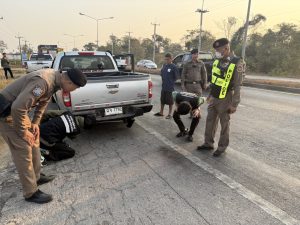 ร.ต.อ. นภดล บุญสละ ปฏิบัติหน้าที่ร้อยเวรฯ พร้อมสายตรวจประจำวันชุดที่ 1 รวมจำนวน 4 นาย ออก ว.4 ร่วมกับสำนักงานสิ่งแวดล้อมและควบคุมมลพิษที่ 12 อุบลราชธานี,ขนส่งอุบลราชธานี ,ตำรวจทางหลวงอุบลราชธานี ดำเนินการตามนโยบายของรัฐบาลและ ตร., บช.ทท. ตรวจสอบยานพาหนะเพื่อตรวจสอบควันดำรถยนต์เปรียบเทีบยกับค่ามาตรฐานที่กฎหมายกำหนด เพื่อป้องกันและแก้ไขปัญหามลพิษทางอากาศ (ฝุ่นละออง pm 2.5) และมีการดำเนินการรณรงค์ป้องกันและลดอุบัติเหตุทางถนนประจำปีงบประมาณ 2568 ณ บริเวณทางหลวงแผ่นดินหมายเลข 2178 สายอุบลราชธานี- สำโรง อ.วารินชำราบ จ.อุบลราชธานี