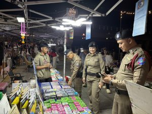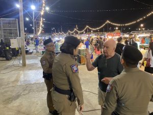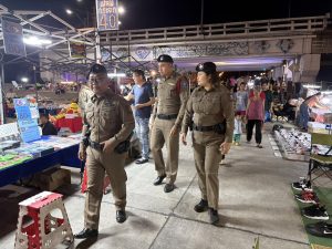 ร.ต.อ.หญิง วนัชพร ศรีภา รอง สว.ส.ทท.3 กก.1 บก.ทท.2 และ จนท.สายตรวจประจำวัน ชุดที่ 2 ออก ว.4 เดินตรวจ ปรากฏกาย เพื่อป้องกันเหตุ ดูแลรักษาความปลอดภัยในพื้นที่โครงการ S.T.C. ตรวจเยี่ยมทักทายนักท่องเที่ยวสร้างความเชื่อมั่นให้แก่นักท่องเที่ยวและประชาชนในพื้นที่ โครงการ Strong Tourism Community (S.T.C) ประชาสัมพันธ์ สายด่วน 1155 ให้คำแนะนำประชาสัมพันธ์ Application Thailand Tourist Police แก่นักท่องเที่ยวตามนโยบาย ผบช.ทท. ณ ตลาดถนนคนเดินริมแม่น้ำมูล อ.เมือง จว.อุบลราชธานี