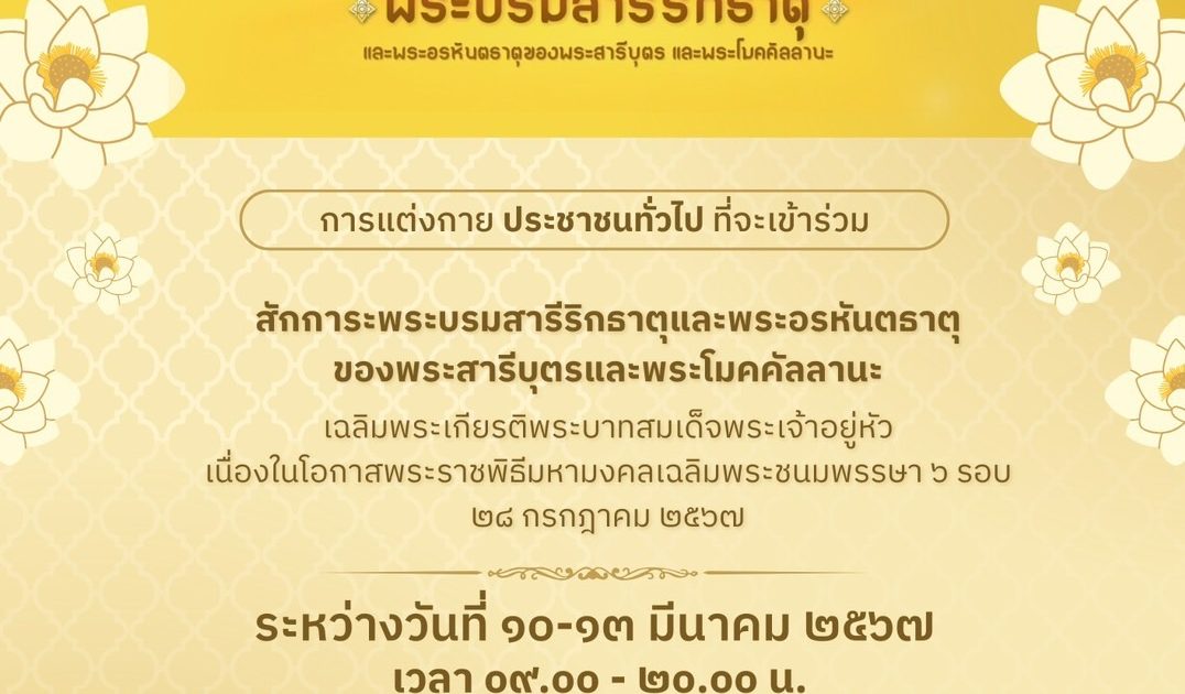 ตำรวจท่องเที่ยวอุบลราชธานีขอเชิญชวนพุทธศาสนิกชนเข้ากราบสักการะพระบรมสารีริกธาตุและพระอรหันตธาตุของพระสาลีบุตรและพระโมคคัลลานะฯ จากประเทศอินเดีย ณ วัดมหาวนารามพระอารามหลวง (วัดป่าใหญ่) ในวันที่ ๑๐ – ๑๓ มีนาคม พ.ศ.๒๕๖๗