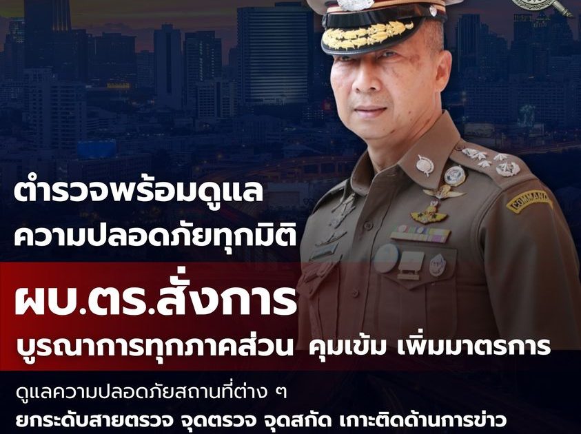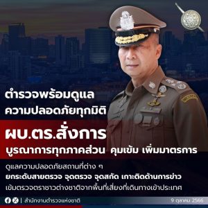 ผบ.ตร.สั่งทุกหน่วยบูรณาการทุกภาคส่วน คุมเข้ม ดูแลความปลอดภัยสถานที่ต่าง ๆ พร้อมให้ยกระดับสายตรวจ จุดตรวจ จุดสกัด และสถานการณ์ด้านการข่าว รวมทั้ง เข้มตรวจตราชาวต่างชาติจากพื้นที่เสี่ยงที่เดินทางเข้าประเทศ ยัน ตร.พร้อมดูแลความปลอดภัยทุกมิติ