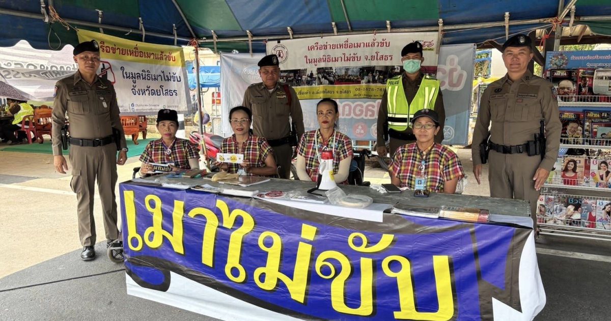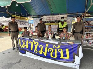 2.ประชาสัมพันธ์และแจกสติกเกอร์เมาไม่ขับ บริเวณถนนลอดช่อง อ.เมือง จ.ยโสธร