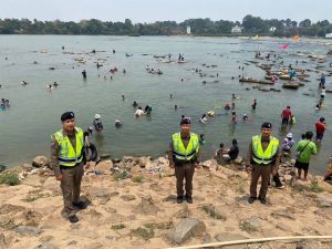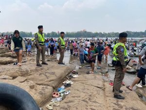 วันที่ 16 เมษายน 2567 เวลาประมาณ 11.00 น. ร.ต.อ.พิตรพิบูล วุฒิคุณ รอง ส.ทท.3 กก.1 บก.ทท.2 ชุดปฏิบัติการสายตรวจชุดช่องเม็ก ออกปฏิบัติหน้าที่ดูแลความปลอดภัย,อำนวยความสะดวกให้กับประชาชนเเละนักท่องเที่ยว เเละได้ประชาสัมพันธ์ให้คำแนะนำ กับประชาชน และได้ Stop walk & talk ประชาสัมพันธ์แก่นักท่องเที่ยว พร้อมทั้งสร้างภาพลักษณ์ที่ดีต่อองค์กรตำรวจท่องเที่ยว ตามนโยบายผู้บังคับบัญชาในห้วงเทศกาลสงกรานต์ ประจำปี 2567 ตามนโยบายผู้บังคับบัญชาจำนวนนักท่องท่องเที่ยว 15,000 คน ณ แก่งสะพือ อ.พิบูลมังสาหาร จ.อุบลราชธานี