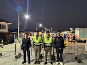 วันที่ 11 ก.พ.2567 เวลาประมาณ 18.00 น. ร.ต.อ.นภดล บุญสละ รอง สว.ส.ทท.3 กก.1 บก.ทท.2 ปฏิบัติหน้าที่ ร้อยเวร ฯ พร้อม สายตรวจประจำวัน รวมจำนวน 4 นาย ออกปฏิบัติหน้าที่ เพื่อดูแลความปลอดภัย,อำนวยความสะดวกให้กับประชาชนเเละนักท่องเที่ยว เเละได้ประชาสัมพันธ์ แอพพลิเคชั่น tourist police i lert u ให้กับประชาชน พร้อมทั้ง stop walk & talk ตามนโยบาย ผู้บังคับบัญชา ณ ตลาดถนนคนเดิน ริมแม่น้ำมูล อ.เมืองจว.อุบลราชธานี