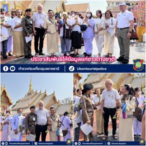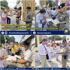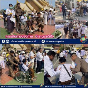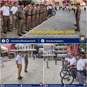 พ.ต.อ.จุลฤทธิ์ จุลกะ รอง ผบก.ทท.๒ พร้อมด้วย พ.ต.อ.วิเชียร วชิรแสงไพโรจน์ ผกก.๑ บก.ทท.๒ พ.ต.ท.สมรภูมิ เหล็กมา สวญ.ส.ทท.๓ กก.๑ บก.ทท.๒ ว่าที่ พ.ต.ต.วริษฐ์ เจริญทอง สว.ส.ทท.๓ กก.๑ บก.ทท.๒ และข้าราชการตำรวจชุดปฏิบัติหน้าที่รักษาความปลอดภัยฯ ประจำวันที่ ๑๑ มี.ค.๒๕๖๗ ปฏิบัติหน้าที่รักษาความปลอดภัย อำนวยความสะดวกให้แก่ประชาชนและนักท่องเที่ยว ในพิธีอัญเชิญพระบรมสารีริกธาตุและพระอรหันตธาตุของพระสารีบุตรและพระโมคคัลลานะณ วัดมหาวนาราม อารามหลวง อ.เมือง จว.อุบลราชธานี