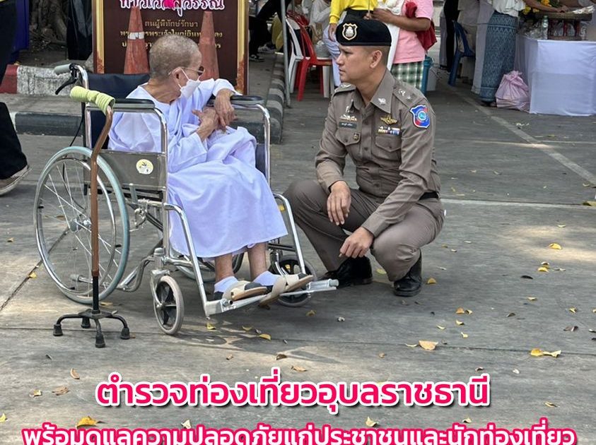 พ.ต.อ.จุลฤทธิ์ จุลกะ รอง ผบก.ทท.๒ พร้อมด้วย พ.ต.อ.วิเชียร วชิรแสงไพโรจน์ ผกก.๑ บก.ทท.๒ พ.ต.ท.สมรภูมิ เหล็กมา สวญ.ส.ทท.๓ กก.๑ บก.ทท.๒ ว่าที่ พ.ต.ต.วริษฐ์ เจริญทอง สว.ส.ทท.๓ กก.๑ บก.ทท.๒ และข้าราชการตำรวจชุดปฏิบัติหน้าที่รักษาความปลอดภัยฯ ประจำวันที่ ๑๑ มี.ค.๒๕๖๗ ปฏิบัติหน้าที่รักษาความปลอดภัย อำนวยความสะดวกให้แก่ประชาชนและนักท่องเที่ยว ในพิธีอัญเชิญพระบรมสารีริกธาตุและพระอรหันตธาตุของพระสารีบุตรและพระโมคคัลลานะณ วัดมหาวนาราม อารามหลวง อ.เมือง จว.อุบลราชธานี