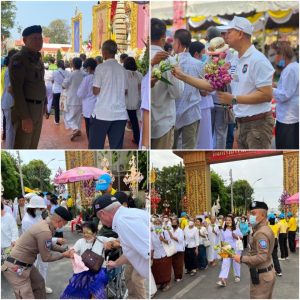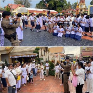 พ.ต.อ.จุลฤทธิ์ จุลกะ รอง ผบก.ทท.๒ พร้อมด้วย พ.ต.อ.วิเชียร วชิรแสงไพโรจน์ ผกก.๑ บก.ทท.๒ พ.ต.ท.สมรภูมิ เหล็กมา สวญ.ส.ทท.๓ กก.๑ บก.ทท.๒ ว่าที่ พ.ต.ต.วริษฐ์ เจริญทอง สว.ส.ทท.๓ กก.๑ บก.ทท.๒ และข้าราชการตำรวจชุดปฏิบัติหน้าที่รักษาความปลอดภัยฯ ประจำวันที่ ๑๒ มี.ค.๒๕๖๗ ปฏิบัติหน้าที่รักษาความปลอดภัย อำนวยความสะดวกให้แก่ประชาชนและนักท่องเที่ยว ในพิธีอัญเชิญพระบรมสารีริกธาตุและพระอรหันตธาตุของพระสารีบุตรและพระโมคคัลลานะ ณ วัดมหาวนาราม อารามหลวง อ.เมือง จ.อุบลราชธานี