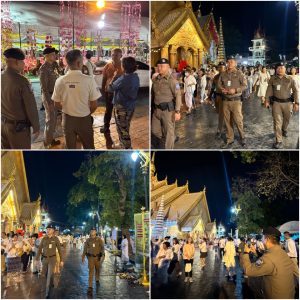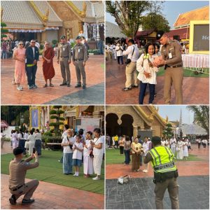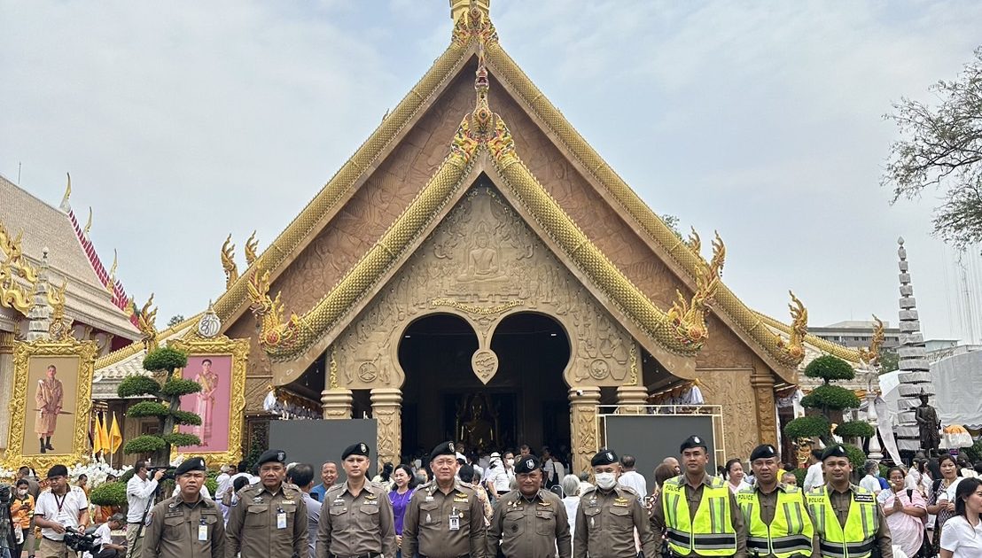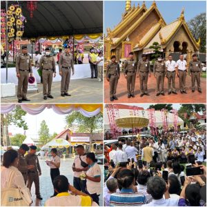 พ.ต.อ.จุลฤทธิ์ จุลกะ รอง ผบก.ทท.๒ พร้อมด้วย พ.ต.อ.วิเชียร วชิรแสงไพโรจน์ ผกก.๑ บก.ทท.๒ พ.ต.ท.สมรภูมิ เหล็กมา สวญ.ส.ทท.๓ กก.๑ บก.ทท.๒ ว่าที่ พ.ต.ต.วริษฐ์ เจริญทอง สว.ส.ทท.๓ กก.๑ บก.ทท.๒ และข้าราชการตำรวจชุดปฏิบัติหน้าที่รักษาความปลอดภัยฯ ประจำวันที่ ๙ มี.ค.๒๕๖๗ ปฏิบัติหน้าที่รักษาความปลอดภัย อำนวยความสะดวกให้แก่ประชาชนและนักท่องเที่ยว ในพิธีอัญเชิญพระบรมสารีริกธาตุและพระอรหันตธาตุของพระสารีบุตรและพระโมคคัลลานะณ วัดมหาวนาราม อารามหลวง อ.เมือง จ.อุบลราชธานี