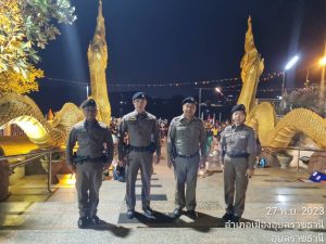 วันทึ่ 27 พ.ย. 2566 เวลาประมาณ 19.30 น. พ.ต.ท.สมรภูมิ เหล็กมา สว.ส.ทท.3 กก.1 บก.ทท.2 พร้อมสายตรวจประจำวัน ออกปฏิบัติหน้าที่ ร่วมกับ สภ.เมืองอุบลฯ และฝ่ายป้องกันบรรเทาสาธารณภัยอุบลราชธานี เพื่ออำนวยความสะดวกและดูแลความสงบเรียบร้อยของประชาชนและนักท่องเที่ยว เนื่องในงานประเพณีลอยกระทงประจำปี 2566 เเละได้ประชาสัมพันธ์ห้ามเล่นดอกไม้เพลิง พลุ ประทัด และโคมลอยในลักษณะที่สร้างความหวาดกลัวและก่อความเดือดร้อนรำคาญ หรือ เป็นอันตรายแก่ผู้อื่น ณ ท่าน้ำวัดหลวง อ.เมืองอุบลราชธานี จว.อุบลราชธานี