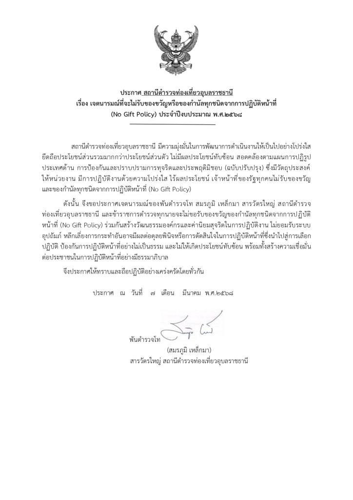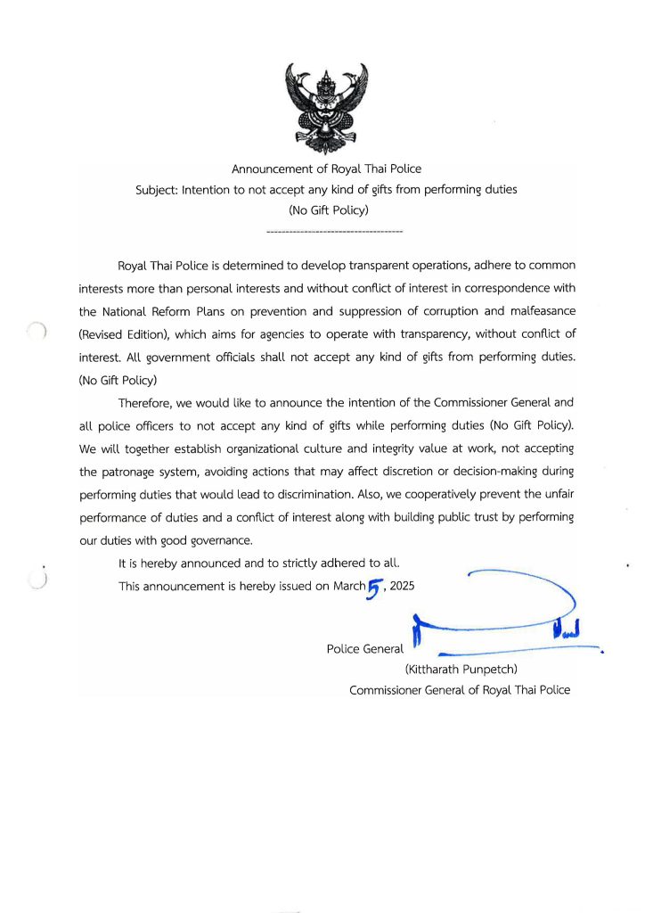 ประกาศนโยบายต่อต้านการรับสินบน (Anti-Bribery Policy)