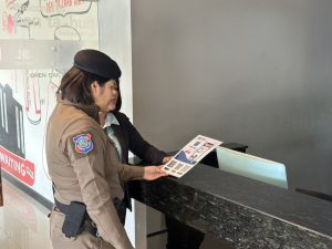 วันนี้ (๗ ม.ค.๖๘) เวลาประมาณ ๑๔.๐๐ ร.ต.อ.หญิง วนัชพร ศรีภา รอง สว.ส.ทท.๓ กก.๑ บก.ทท.๒ ปฏิบัติหน้าที่ ร้อยเวรฯ พร้อมสายตรวจประจำวัน ชุดที่ ๒ รวมจำนวน ๔ นาย ออก ว.๔ เพื่อดูแลความปลอดภัย,อำนวยความสะดวกให้กับประชาชนเเละนักท่องเที่ยว, ประชาสัมพันธ์สายด่วน ๑๑๕๕ พร้อมด้วย แอพพลิเคชั่น Thailand Touris Police ให้กับประชาชน เเละได้ Stop walk&talk ให้คำแนะนำ ประชาสัมพันธ์แก่นักท่องเที่ยว ตามนโยบายผู้บังคับบัญชา ณ โรงแรมเป็นตะฮัก อ.เมือง จว.อุบลราชธานี