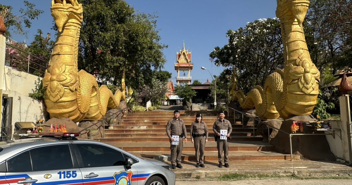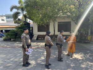 วันนี้ (๗ ม.ค.๖๘) เวลาประมาณ ๑๑.๓๐ ร.ต.อ.หญิง วนัชพร ศรีภา รอง สว.ส.ทท.๓ กก.๑ บก.ทท.๒ ปฏิบัติหน้าที่ ร้อยเวรฯ พร้อมสายตรวจประจำวัน ชุดที่ ๒ รวมจำนวน ๔ นาย ออก ว.๔ เพื่อดูแลความปลอดภัย,อำนวยความสะดวกให้กับประชาชนเเละนักท่องเที่ยว, ประชาสัมพันธ์สายด่วน ๑๑๕๕ พร้อมด้วย แอพพลิเคชั่น Thailand Touris Police ให้กับประชาชน เเละได้ Stop walk&talk ให้คำแนะนำ ประชาสัมพันธ์แก่นักท่องเที่ยว ตามนโยบายผู้บังคับบัญชา ณ วัดหลวง อ.เมือง จว.อุบลราชธานี