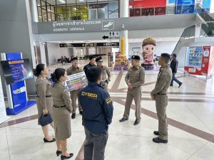 พ.ต.ท.สมรภูมิ เหล็กมา สวญ.ส.ทท.3 กก.1 บก.ทท.2 และ ร.ต.ท.ณัฐพล แก่นจันทร์ รอง สว.ส.ทท.3 กก.1 บก.ทท.2 พร้อมชุดปฏิบัติการสนามบิน ร่วมกับ จนท.กก.2 บก.สอท.3 โดยการสั่งการของ พล.ต.ท.ไตรรงค์ ผิวพรรณ ผบช.สอท. ได้ประชาสัมพันธ์ แอพพลิเคชั่น Thailand tourist police พร้อมการ Stopwalk&talk ตามนโยบายผู้บังคับบัญชาและ ประชาสัมพันธ์แนะนำข้อควรระวัง ปัญหาคนต่างด้าวที่หลบหนีเข้าเมืองโดยผิดกฎหมาย คนต่างด้าวถูกหลอกลวงหรือประกอบธุรกิจผิดกฎหมาย อาชญากรรมข้ามชาติ อาชญากรรมทางเทคโนโลยี