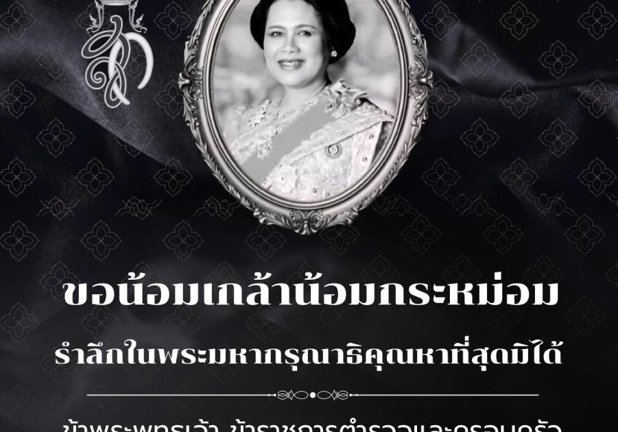 พระผู้เสด็จสู่สวรรคาลัย สมเด็จพระนางเจ้าสิริกิติ์ พระบรมราชินีนาถ พระบรมราชชนนีพันปีหลวง ธ สถิตในดวงใจ ไทยนิรันดร์ 24 ตุลาคม 2568 ข้าพระพุทธเจ้า ข้าราชการตำรวจและครอบครัว กองบัญชาการตำรวจท่องเที่ยว