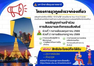 พ.ต.ท.ธนากร ธรรมเมธา สวญ.ส.ทท.3 กก.1 บก.ทท.2 ร่วมประชุมเตรียมความพร้อมในการอบรมโครงการยุวทูตตำรวจท่องเที่ยว ณ มหาวิทยาลัยอุบลราชธานี 8 เมษายน 2569 โดย admin / ข่าวประชาสัมพันธ์,ข่าวกิจกรรม,ข่าวประชาสัมพันธ์,ข่าวประชาสัมพันธ์,ข่าวฝากประชาสัมพันธ์,ข่าวภารกิจผู้บังคับบัญชา วันที่ 8 เม.ย. 2569 | เวลา 13.00 น. พ.ต.ท.ธนากร ธรรมเมธา สวญ.ส.ทท.3 กก.1 บก.ทท.2 ร่วมประชุมเตรียมความพร้อมในการอบรมโครงการยุวทูตตำรวจท่องเที่ยว โดยมีกำหนดรายการ/หัวข้อวิชา และมอบหมายวิทยากร หน้าที่รับผิดชอบให้กับเจ้าหน้าที่ครบทุกฝ่าย ตลอดจน ออกแบบสื่อประชาสัมพันธ์โครงการยุวทูตตำรวจท่องเที่ยว ณ มหาวิทยาลัยอุบลราชธานี #ตำรวจท่องเที่ยวอุบลราชธานี #TouristPolice Facebook iconFacebookTwitter iconTwitterLINE iconLine