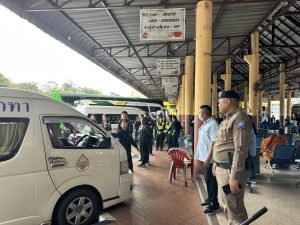 พ.ต.ท.ธนากร ธรรมเมธา สวญ.ส.ทท.3 กก.1 บก.ทท.2 ร่วมให้การต้อนรับ นาย สรพงศ์ ไพรฑูรย์พงษ์ อธิบดีกรมการขนส่งทางบก กรณีเดินทางมาตรวจเยี่ยม กวดขันวินัยการจราจร สำนักงานขนส่งจังหวัดอุบลราชธานี ในห้วงเทศกาลวันปีใหม่ 2569 27 ธันวาคม 2568 โดย admin / ข่าวประชาสัมพันธ์,ข่าวกิจกรรม,ข่าวประชาสัมพันธ์,ข่าวประชาสัมพันธ์,ข่าวฝากประชาสัมพันธ์,ข่าวภารกิจผู้บังคับบัญชา พ.ต.ท.ธนากร ธรรมเมธา สวญ.ส.ทท.3 กก.1 บก.ทท.2 พร้อมด้วยเจ้าหน้าที่ชุดปฏิบัติการสายตรวจเวรประจำวัน ร่วมให้การต้อนรับ นาย สรพงศ์ ไพรฑูรย์พงษ์ อธิบดีกรมการขนส่งทางบก กรณีเดินทางมาตรวจเยี่ยม กวดขันวินัยการจราจร สำนักงานขนส่งจังหวัดอุบลราชธานี ในห้วงเทศกาลวันปีใหม่ 2569 ณ สถานีขนส่งผู้โดยสารจังหวัดอุบลราชธานี Facebook iconFacebookTwitter iconTwitterLINE iconLine