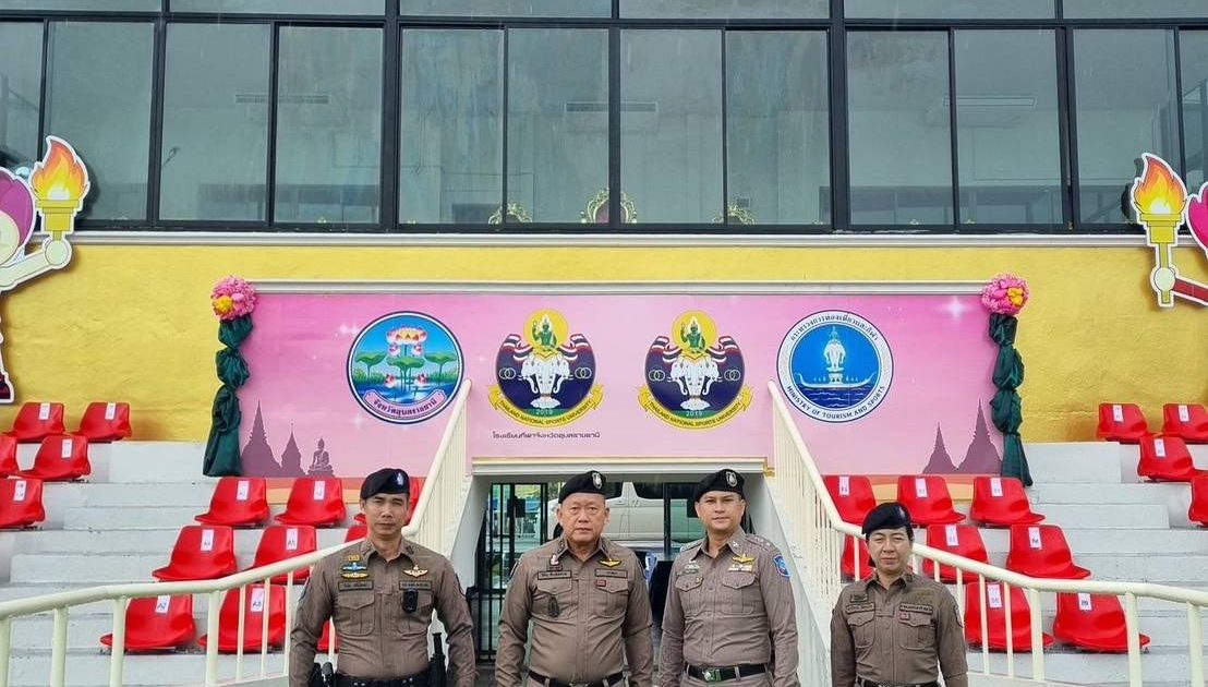 พ.ต.อ.วิเชียร วชิรแสงไพโรจน์ รอง ผบก.ทท.2, พ.ต.ท.สมรภูมิ เหล็กมา สวญ.ส.ทท.3 กก.1 บก.ทท.2 พร้อมชุดสายตรวจพิธีเปิด “การแข่งขันกีฬาโรงเรียนกีฬาแห่งประเทศไทย ครั้งที่ 26 อุบลราชธานีเกมส์ ”