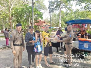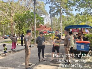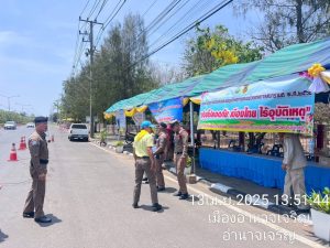 ร.ต.อ.พงษ์พัฒน์ เกริกพิบูลชัย พร้อมด้วย จนท.ชุดปฏิบัติการสายตรวจ จว.อำนาจเจริญ ออก ว.4 เพื่อดูแลความปลอดภัย,อำนวยความสะดวกให้กับประชาชนเเละนักท่องเที่ยว, ประชาสัมพันธ์ สายด่วน 1155 พร้อมด้วย แอพพลิเคชั่น Thailand Tourist Police ให้กับประชาชน เเละได้ Stop walk&talk ให้คำแนะนำประชาสัมพันธ์แก่นักท่องเที่ยว ตามนโยบายผู้บังคับบัญชา ณ ลานพระมงคลมิ่งเมือง อ.เมือง จว.อำนาจเจริญ และศูนย์อำนวยการป้องกันและลดอุบัติเหตุทางถนนช่วงเทศกาลสงกรานต์ ประจำปี พ.ศ.2568 หน้าสถานีตำรวจทางหลวงอำนาจเจริญ อ.เมือง จว.อำนาจเจริญ