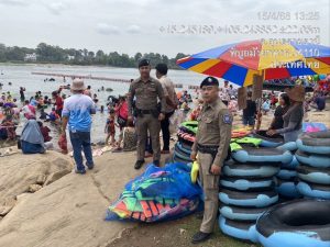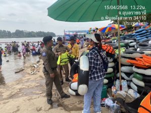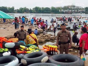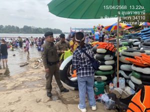 ร.ต.อ.พิตรพิบูล วุฒิคุณ พร้อมด้วยชุดปฏิบัติการช่องเม็ก ว.4 ดูแลความปลอดภัย, อำนวยความสะดวก ให้กับประชาชนเเละนักท่องเที่ยว ในห้วงเทศกาลสงกรานต์ 2568 เเละได้ดำเนินการประชาสัมพันธ์แอพพลิเคชั่น Thailand Tourist Police, ประชาสัมพันธ์สายด่วน 1155 ตามนโยบายผู้บังคับบัญชา ประชาสัมพันธ์ โครงการรณรงค์ลดอุบัติเหตุบนท้องถนน “เมา ไม่ ขับ” แก่ผู้ขับขี่รถยนต์ รถจักรยานยนต์ ตรวจสอบและให้คำเเนะนำอุปกรณ์ป้องกันการจมน้ำ ในการลงเล่นน้ำ เช่น ห่วงยาง เสื้อชูชีพ เป็นต้น และได้มอบซองกันน้ำให้กับนักท่องเที่ยวเเละประชาชน เพื่อป้องกันไม่ให้ทรัพย์สินสูญหาย หรือเสียหายจากการเล่นน้ำสงกรานต์ ณ หาดพัทยาน้อย อ.สิรินธร และ เเก่งสะพือ ต.พิบูล อ.พิบูลมังสาหาร จว.อุบลราชธานี
