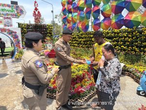ร.ต.อ.หญิง วนัชพร ศรีภา ปฏิบัติหน้าที่ร้อยเวร พร้อมสายตรวจประจำวันชุดที่ 2 ดูแลความปลอดภัย,อำนวยความสะดวกให้กับประชาชนเเละนักท่องเที่ยว, แอพพลิเคชั่น Thailand Tourist Police, ประชาสัมพันธ์สายด่วน 1155 ให้กับประชาชน เเละได้ Stop walk&talk ให้คำแนะนำ ประชาสัมพันธ์ พร้อมแจกถุงกันน้ำโทรศัพท์ ตามนโยบาย บช.ทท. แก่นักท่องเที่ยว ในห้วงเทศกาลสงกรานต์ ประจำปี 2568 ณ ถนนดอกไม้และสายน้ำ อ.เมือง จว.อุบลราชธานี