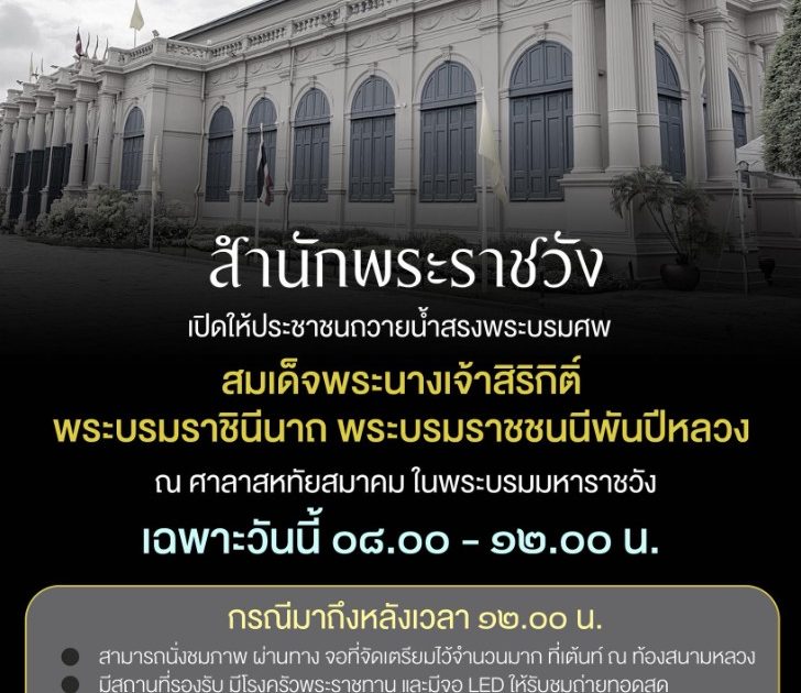 สำนักพระราชวังเปิดให้ประชาชนถวายน้ำสรงพระบรมศพสมเด็จพระนางเจ้าสิริกิติ์ พระบรมราชินีนาถพระบรมราชชนนีพันปีหลวง ณ ศาลาสหทัยสมาคม ในพระบรมมหาราชวัง