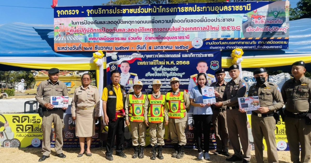 วันที่ 31 ธันวาคม 2567 เวลา 11.30 น. พ.ต.ท.สมรภูมิ เหล็กมา สวญ.ส.ทท.3 กก.1 บก.ทท.2 พ.ต.ต.วริษฐ์ เจริญทอง สว.ส.ทท.3 กก.1 บก.ทท.2 พร้อมสายตรวจออกปฏิบัติหน้าที่ เพื่ออำนวยความสะดวกและรักษาความปลอดภัย แก่นักท่องเที่ยวและประชาชนในช่วงเทศกาลปีใหม่ และประชาสัมพันธ์ แอพพลิเคชั่น Thailand Tourists police พร้อมทั้ง stop walk & talk ตามนโยบาย ผู้บังคับบัญชา และได้มอบน้ำดื่มให้กับเจ้าหน้าที่ประจำจุดให้บริการประชาชน ณ ศูนย์ปฏิบัติการป้องกันและลดอุบัติเหตุทางถนนช่วงเทศกาลปีใหม่ หน้าโครงการชลประทานอุบลราชธานี เทศบาลเมืองจาระแม อ.เมือง จ.อุบลราชธานี