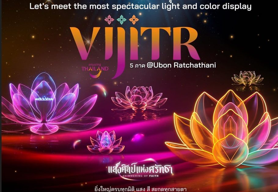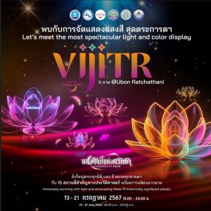 Province consisting of modern light, color, and sound techniques, including Light Up, Projection Mapping, and cultural performances that reflect the beauty of the way of life, local wisdom and traditions of Ubon Ratchathani Province in 7 coordinates and 15 performance points.