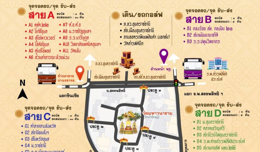 – สาย D เส้นทาง ม.อุบลราชธานี – วัดมหาวนาราม