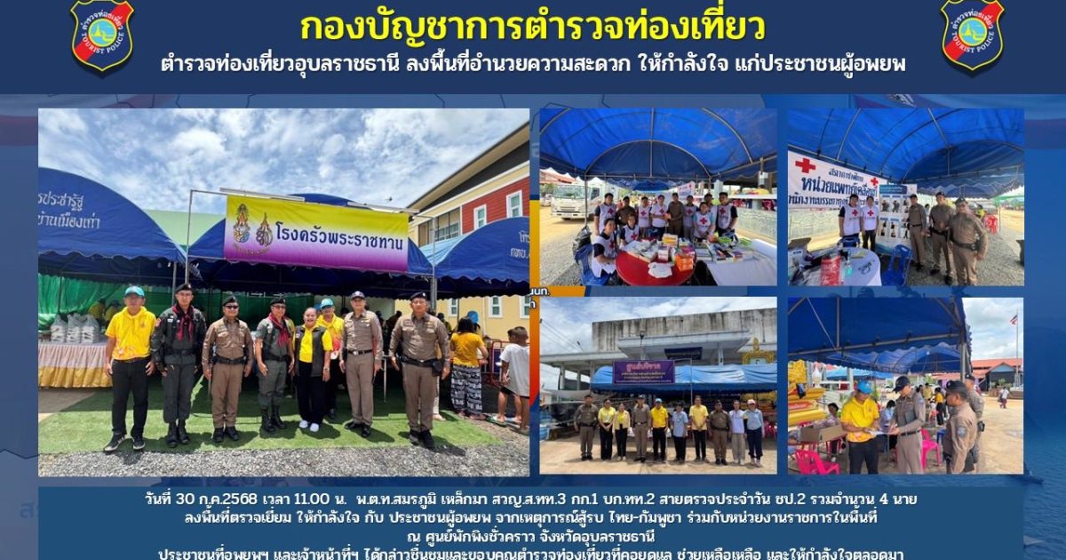 ❤️ ตำรวจท่องเที่ยว ลงพื้นที่ตรวจเยี่ยมให้กำลังใจ กับประชาชนผู้อพยพ พ.ต.ท.สมรภูมิ เหล็กมา สวญ.ส.ทท.3 กก.1 บก.ทท.2 พร้อมด้วยสายตรวจประจำวันลงพื้นที่ตรวจเยี่ยม ให้กำลังใจ กับ ประชาชนผู้อพยพ จากเหตุการณ์สู้รบ ไทย-กัมพูชา ร่วมกับหน่วยงานราชการในพื้นที่ณ ศูนย์พักพิงชั่วคราว จังหวัดอุบลราชธานี