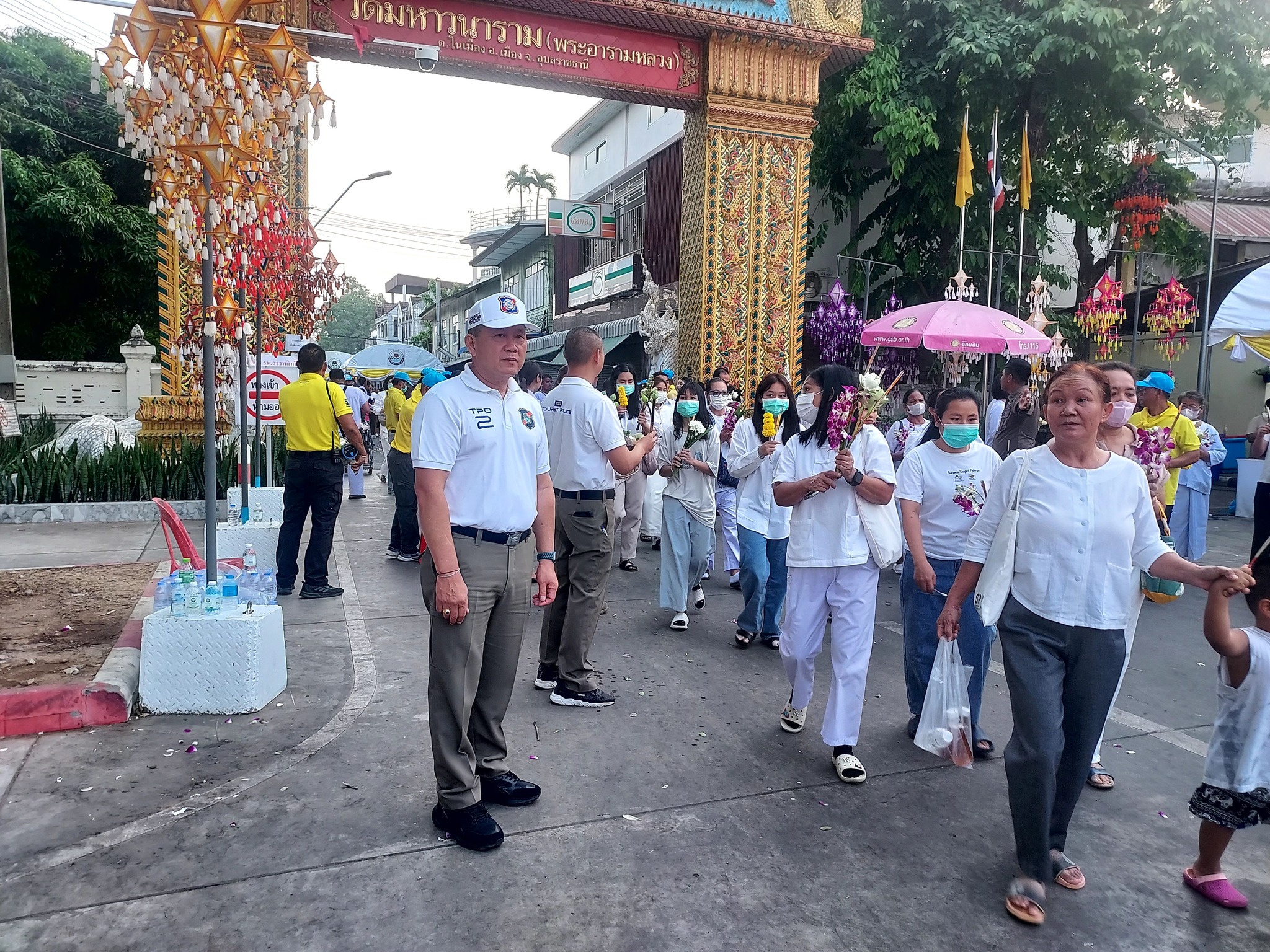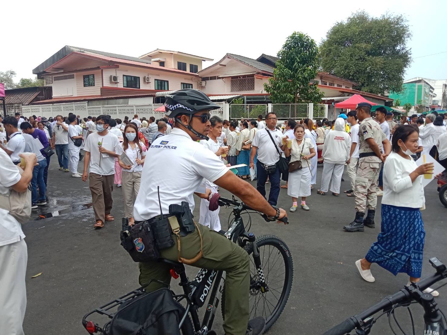 ชุดสายตรวจจักรยานตำรวจท่องเที่ยวอุบลราชธานี อำนวยความสะดวกและรักษาความปลอดภัยแก่สาธุชนที่เดินทางมา กราบสักการะพระบรมสารีริกธาตุ
