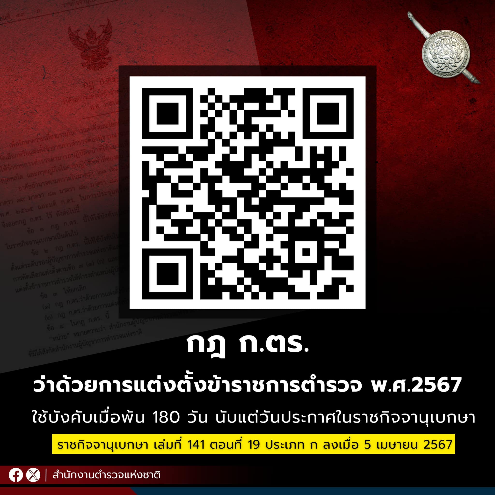 กฎ ก.ตร. ว่าด้วยการแต่งตั้งข้าราชการตำรวจ พ.ศ.2567 ประกาศในราชกิจจานุเบกษา เล่มที่ 141 ตอนที่ 19 ประ