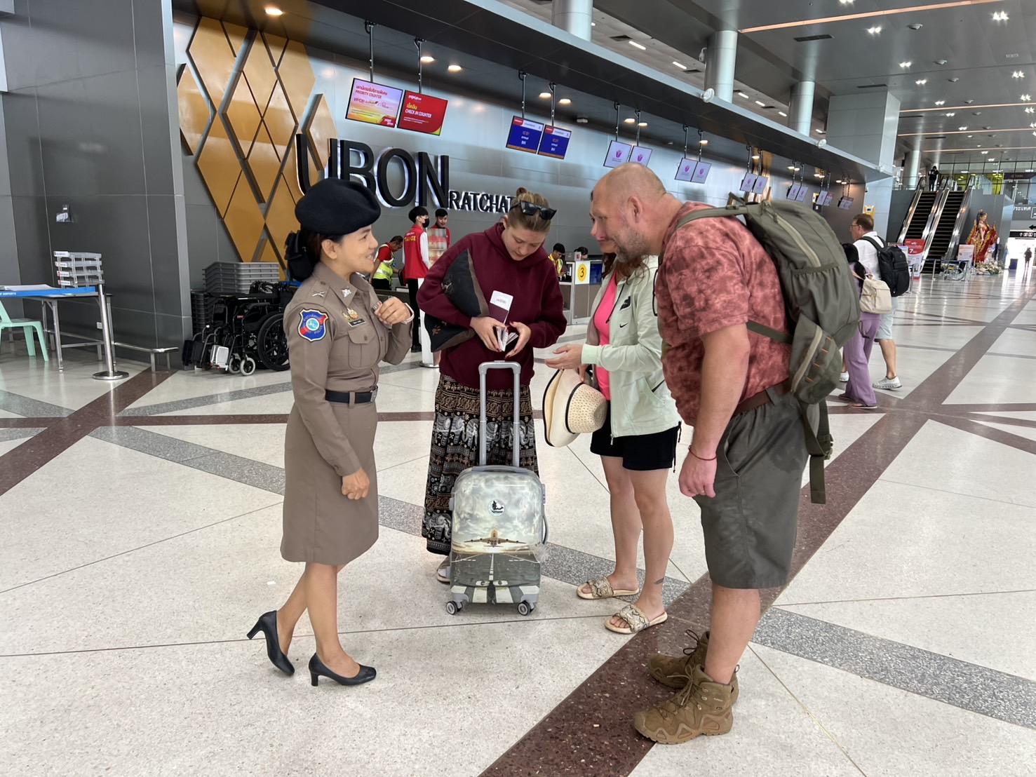 ดูแลอำนวยความสะดวก รักษาความปลอดภัยให้กับประชาชนเเละนักท่องเที่ยว ณ ท่าอากาศยานนานาชาติอุบลราชธานี อ.เมือง จว.อุบลราชธานี