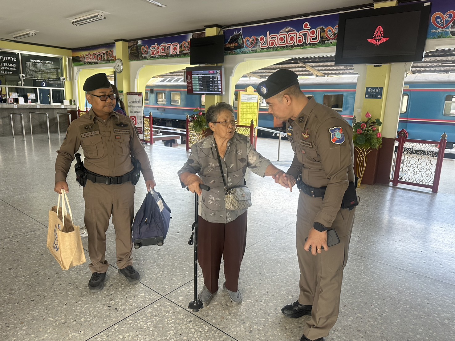 ตำรวจท่องเที่ยวอุบลราชธานีให้การช่วยเหลือคุณยายกรณีเดินทางโดยสารมาเพียงลำพัง