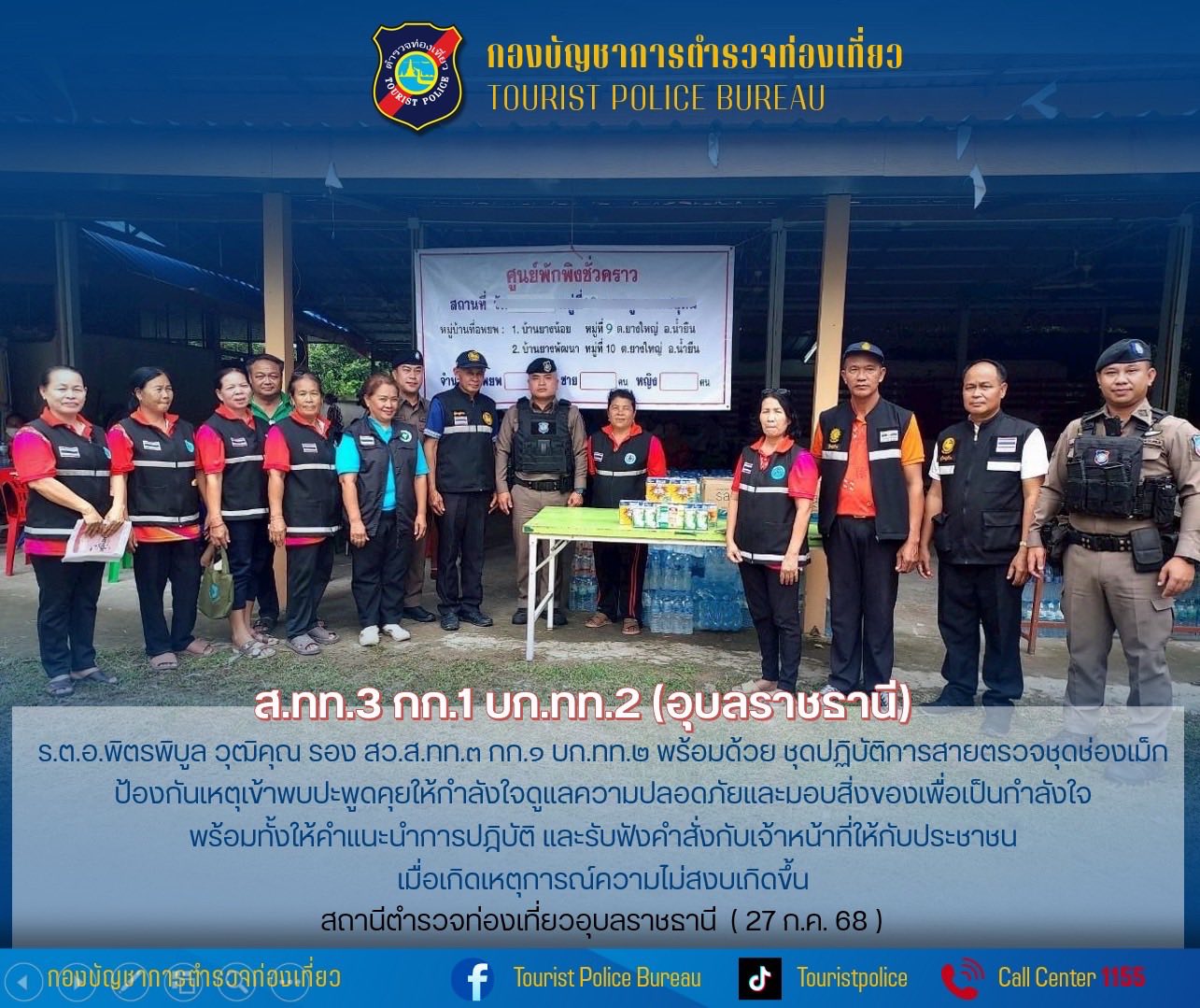 ❤ตำรวจท่องเที่ยวอุบลราชธานี มอบสิ่งของให้แก่ผู้อพยพ จากสถานการณ์ชายแดนไทย-กัมพูชา 27 กรกฎาคม 2568 โดย admin