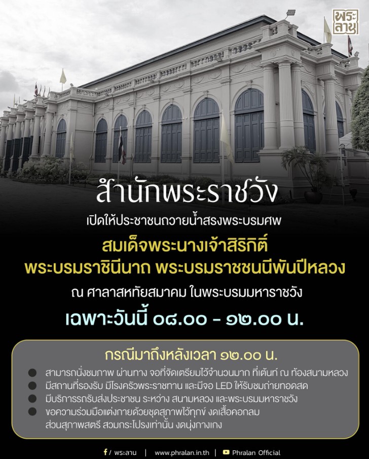สำนักพระราชวัง เผยแพร่ประกาศ สมเด็จพระนางเจ้าสิริกิติ์ พระบรมราชินีนาถ พระบรมราชชนนีพันปีหลวง สวรรคต