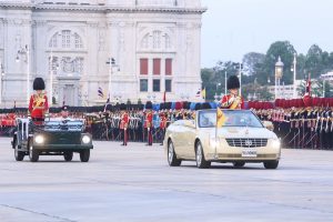 ในการนี้พลเอกหญิงสมเด็จพระนางเจ้าสุทิดา พัชรสุธาพิมลลักษณพระบรมราชินี ทรงนำการสวนสนามของทหารมหาดเล็กราชวัลลภรักษาพระองค์และทหารรักษาพระองค์สามเหล่าทัพในตำแหน่ง “ องค์ผู้บังคับการกองผสม ” พร้อมด้วยพลเอกหญิง สมเด็จพระเจ้าลูกเธอ เจ้าฟ้าสิริวัณณวรี นารีรัตนราชกัญญา ร่วมสวนสนาม ทรงม้านำขบวนกองพันทหารม้ารักษาพระองค์ ในตำแหน่ง “ องค์ผู้บังคับกองพันทหารม้ารักษาพระองค์ “